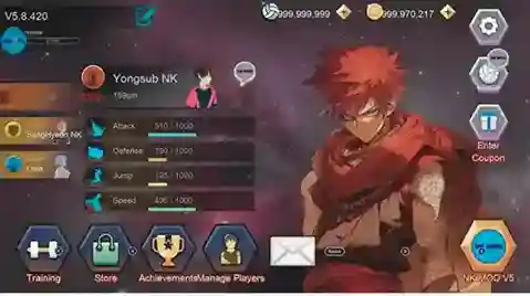 - Tingkatkan level dan atribut seperti lompatan (170) dan serangan.